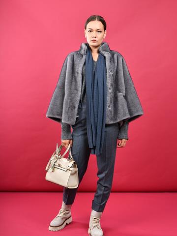 Cappa in eco montone con coulisse e bottoni a pressione