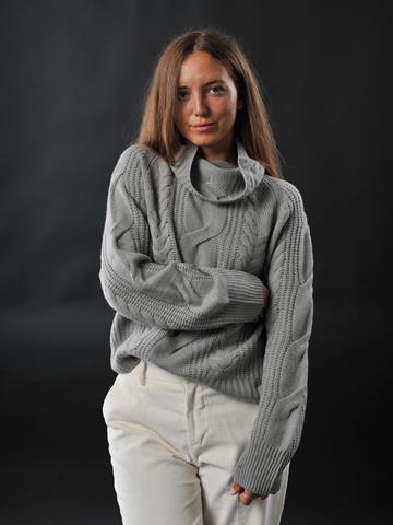Pullover over con collo ad anello e trecce.