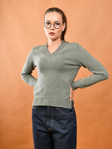 Maglia in lambswool a due fili con scollo a V
