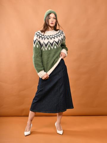 Maglione girocollo ed intarsi con alto contenuto artigianale