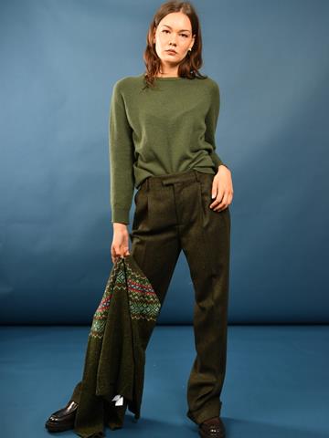 Maglia in cachemire due fili scollo barchetta, manica raglan