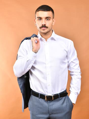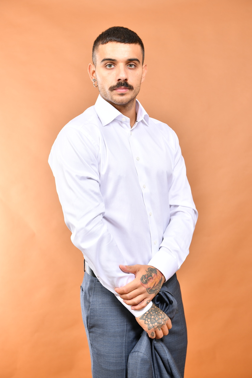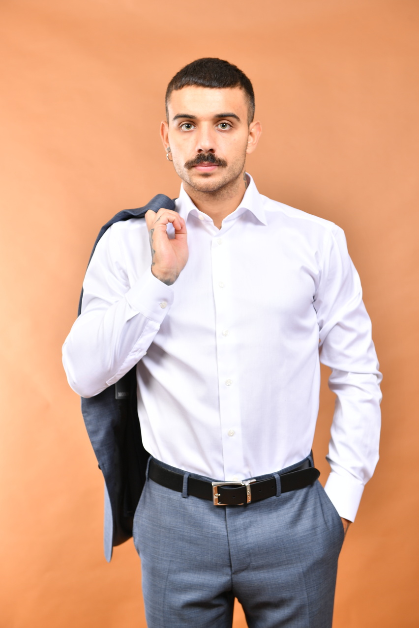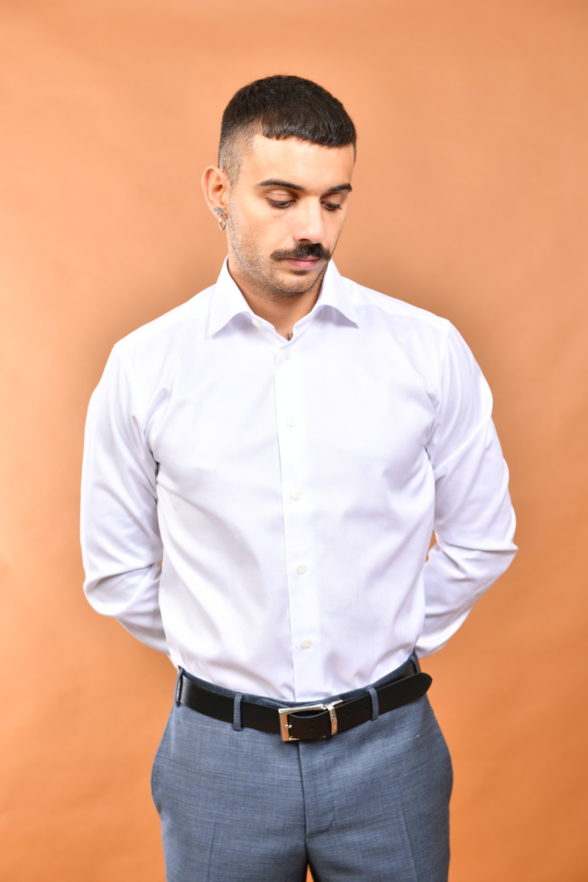 Camicia in twill di cotone Eton collo francese