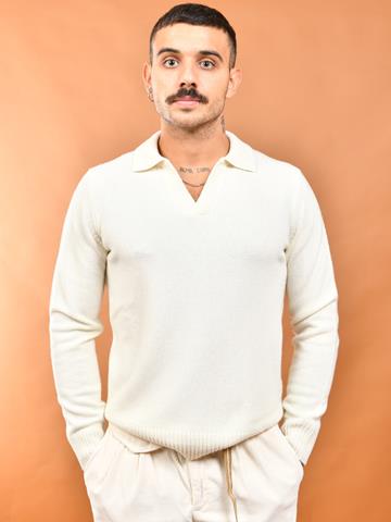 Maglia in lambswool con collo polo senza bottone